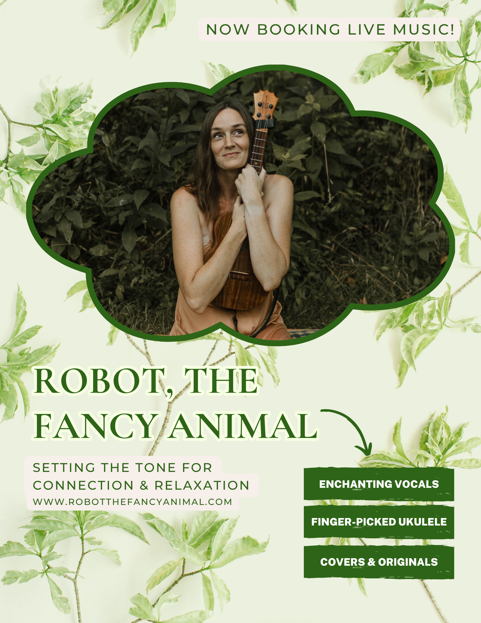From small intimate gatherings to farmers markets, Robot and her ukulele bring a mix of well known cover songs (plus a few not so familiar) and original tunes meant to soothe, relax, and inspire a smile.
